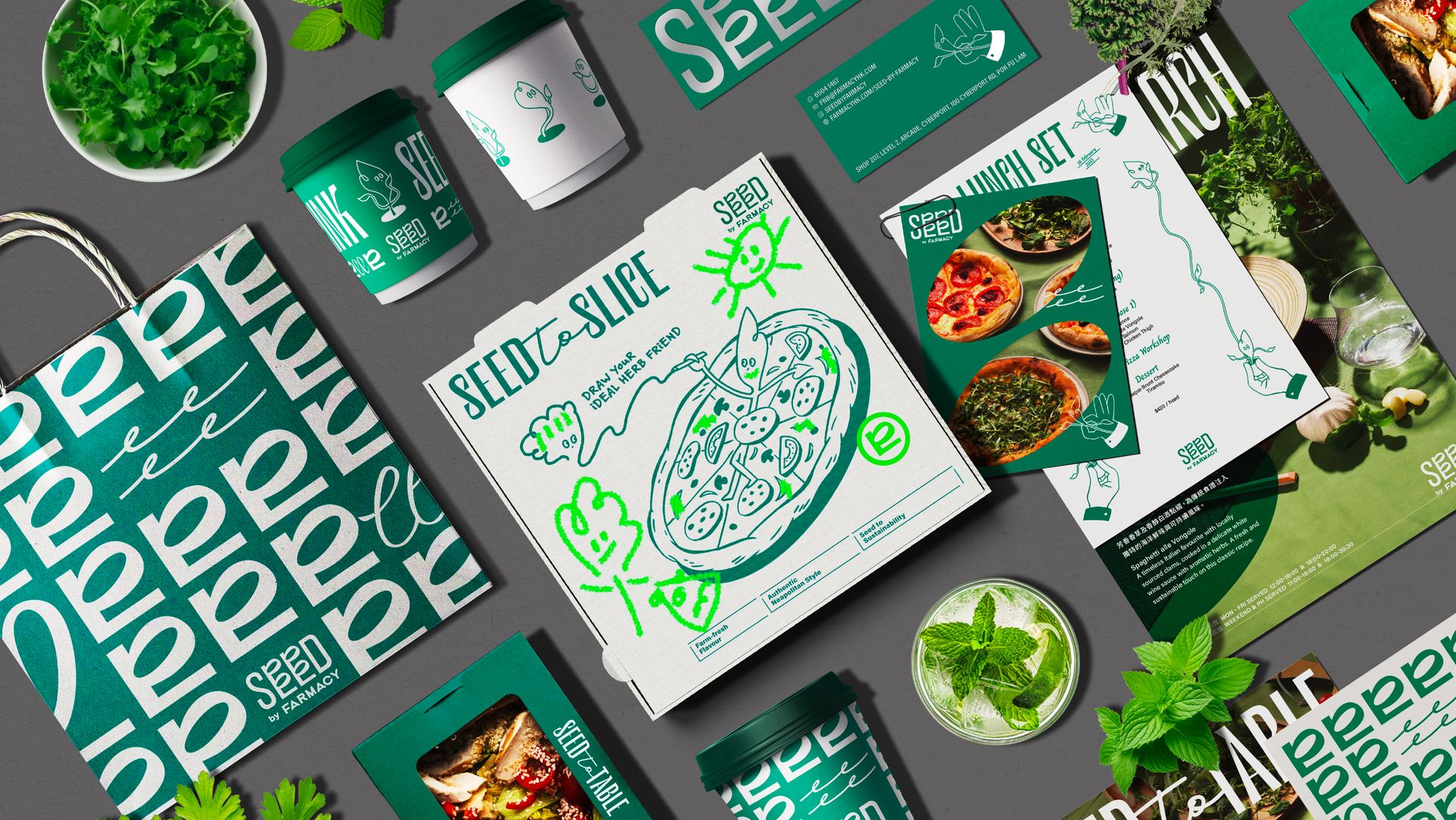 關於SEED by Farmacy:綠色科技餐飲革命 SEED by Farmacy位於數碼港,以「從種子到餐桌」的概念重新定義現代歐式料理。 SEED將Farmacy標誌性的智慧農業技術融入餐廳空間,供應新鮮採摘、永續的農產品。 Vincdesign負責品牌重塑和重新定位,巧妙地將農業科技與日常餐飲結合,打造出親切友善的品牌形象。最終呈現的品牌,完美融合了前衛創新與匠心獨具的烹飪藝術。